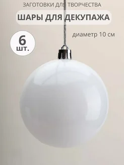 Набор шаров 10 см, пластик, белый глянцевый, 6 шт
