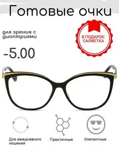 Готовые очки для зрения -5.00, корригирующие с диоптриями