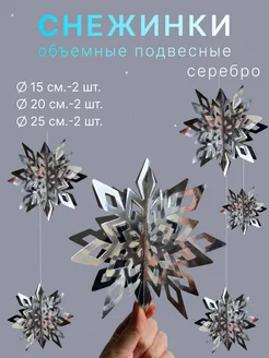 Снежинки объемные подвесные бумажные 6 шт. серебристые