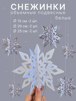 Снежинки объемные подвесные бумажные 6 шт. белые