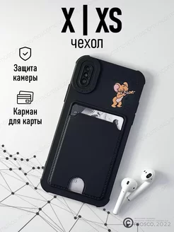 Чехол на iPhone XS с карманом для карты и защитой камеры