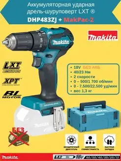 Дрель-шуруповерт DHP483Z +кейс Makpac-2 без АКБиЗУ