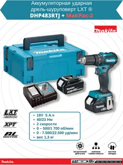 Аккумуляторная ударная дрель-шуруповерт DHP483RTJ