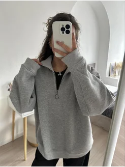 Свитер мужской на молнии полузамок шерстяной оверсайз