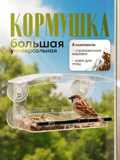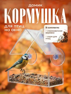 Кормушка для птиц на окно на присосках прозрачная уличная