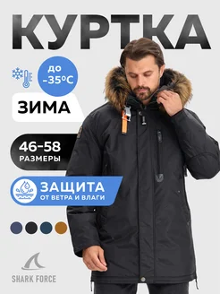Куртка зимняя с капюшоном и мехом удлиненный пуховик до -30