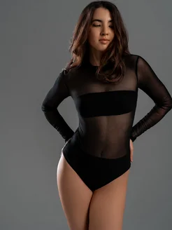 Боди прозрачный с длинным рукавом из сетки для танцев