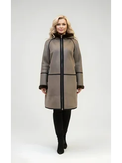 Пальто зимнее длинное на верблюжьей шерсти эко норка