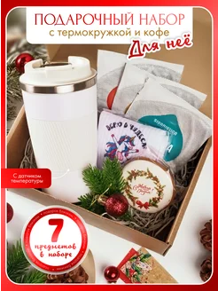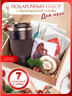 Подарочный набор на Новый год с термокружкой сладкий и кофе