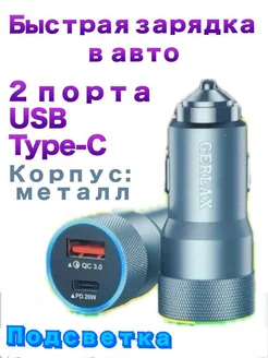 Зарядка в прикуриватель USB и Type-C
