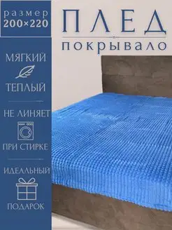 Плед Синий пушистый Велсофт на кровать диван 200х220