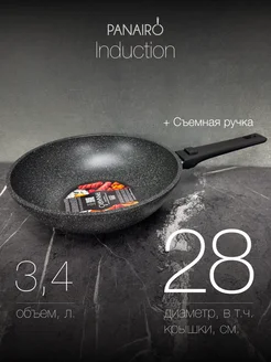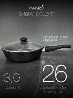 Сковорода 28 см большая с крышкой и съемной ручкой Панейро
