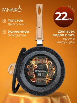 Сковорода 24 см глубокая с крышкой и съемной ручкой Панейро