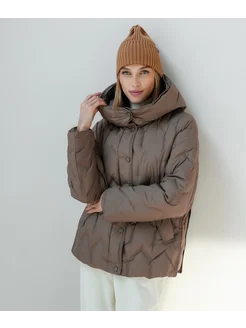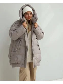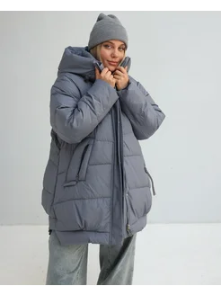 Пуховик зимний короткий стильный с капюшоном оверсайз