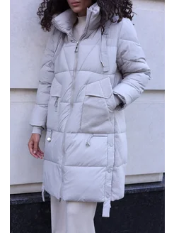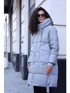 Пуховик зимний удлиненный с мехом и капюшоном до колена