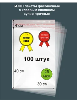 БОПП 30х40 100 шт пакеты упаковочные с клеевым клапаном