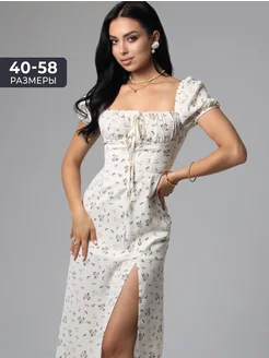 Летнее платье крестьянка миди