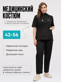 Медицинский костюм с прямыми брюками воротник-стойка стрейч