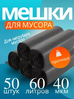 Мешки для мусора 60 л 50 шт в рулонах прочные плотные