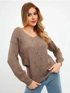 Кофта вязаная теплая в полоску оверсайз с вырезом