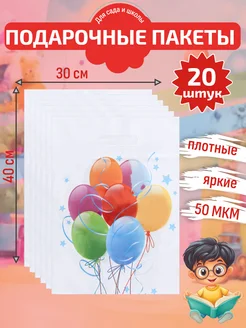 Подарочные пакеты в детский сад и школу 30*40 см 20 штук