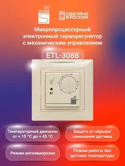 Терморегулятор бежевый ETL-308B для тёплого пола