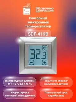 Терморегулятор серебро SDF-419B для тёплого пола
