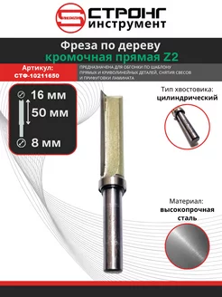 Фреза кромочная по дереву прямая Z2, 8х16Dх50H мм