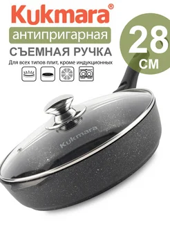 Сковорода антипригарная 28 см с крышкой, съемной ручкой