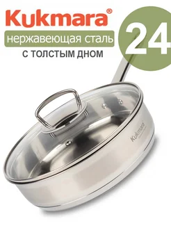 Сковорода с крышкой большая, толстым дном для индукции 24 см