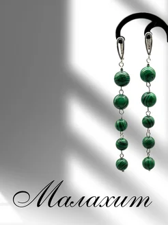 Серьги длинные с камнем Малахит 8 мм и 10 мм