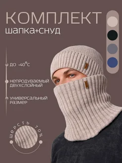 Шапка мужская бини зимняя со снудом комплект на флисе
