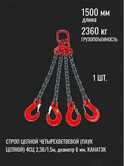 Строп цепной четырехветвевой (паук цепной) 4СЦ 2,36т 1,5м