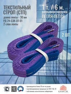Стропа текстильная петлевая ленточная г п 1т (2шт) 6м