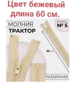Молния «Трактор», №5, разъёмная,60 см,бежевый