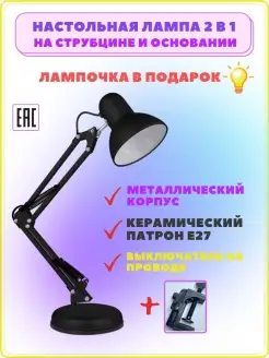 Настольная лампа на струбцине для школьника