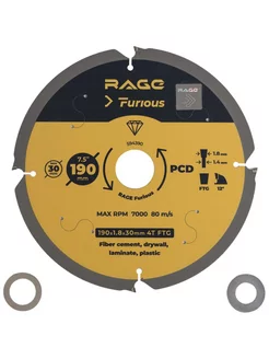 Диск пильный по фиброцементу Furious 190x30 мм, Z4 594390