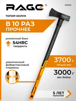 Топор - колун 3000 г (3кг) с фиберглассовой рукояткой 87 см