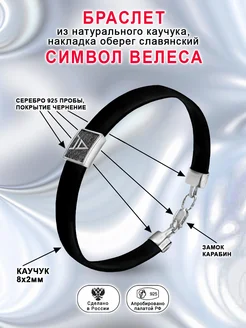 Браслет из каучука оберег Символ Велеса серебряный 925 проба