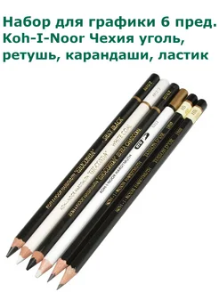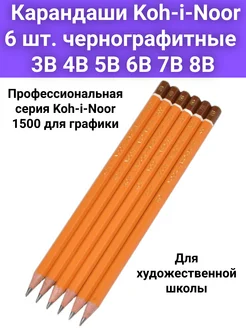 Карандаши простые 6 шт. 3B-8B чернографитные Кохинор 1500