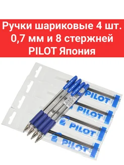 Ручка шариковая 4 штуки 0,7 мм и 8 стержней к ней