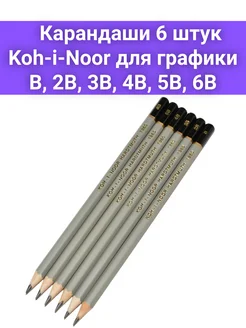 Карандаши простые 6 шт. B-6B чернографитные Кохинор 1860
