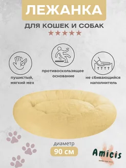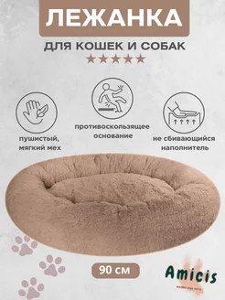 Лежанка для собак и кошек кровать для животных мягкая d90 см