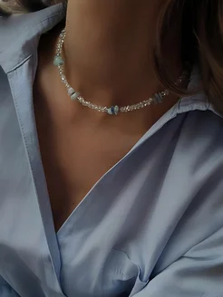 Прозрачный чокер из алмазного стекла с розовым кварцем