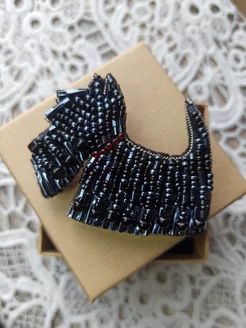 Собака скотч-терьер брошь из бисера ручная работа