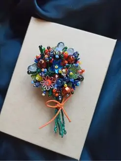 букет цветов (бутоньерка) брошь из бисера ручной работы