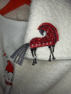 Лошадь красная брошь из бисера ручная работа