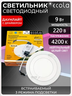 Светильник встраиваемый с драйвером с подсветкой 9 Вт