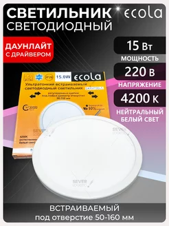 Светильник встраиваемый крепление (5-14сm) с драйвером 15 Вт
