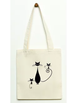 Шоппер хлопковый с принтом Коты